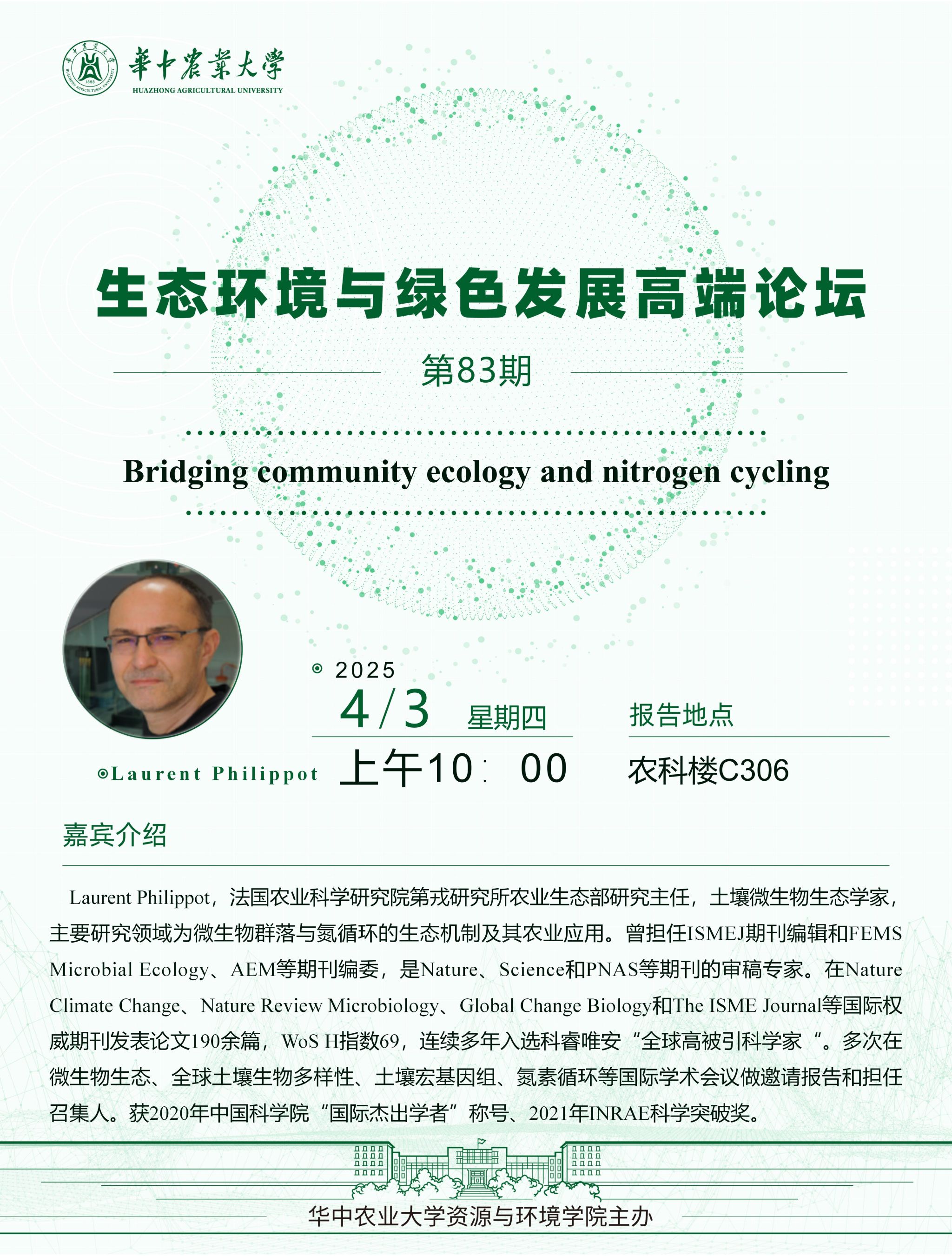 【高端论坛】第83期:Bridging community ecology and nitrogen cycling