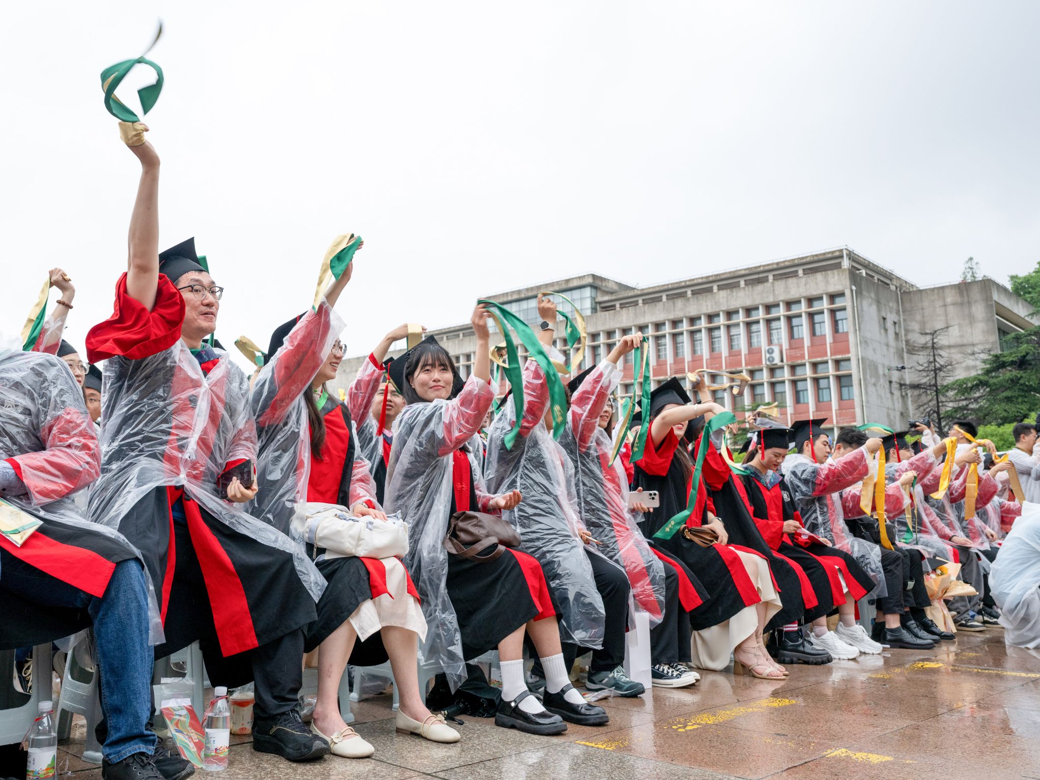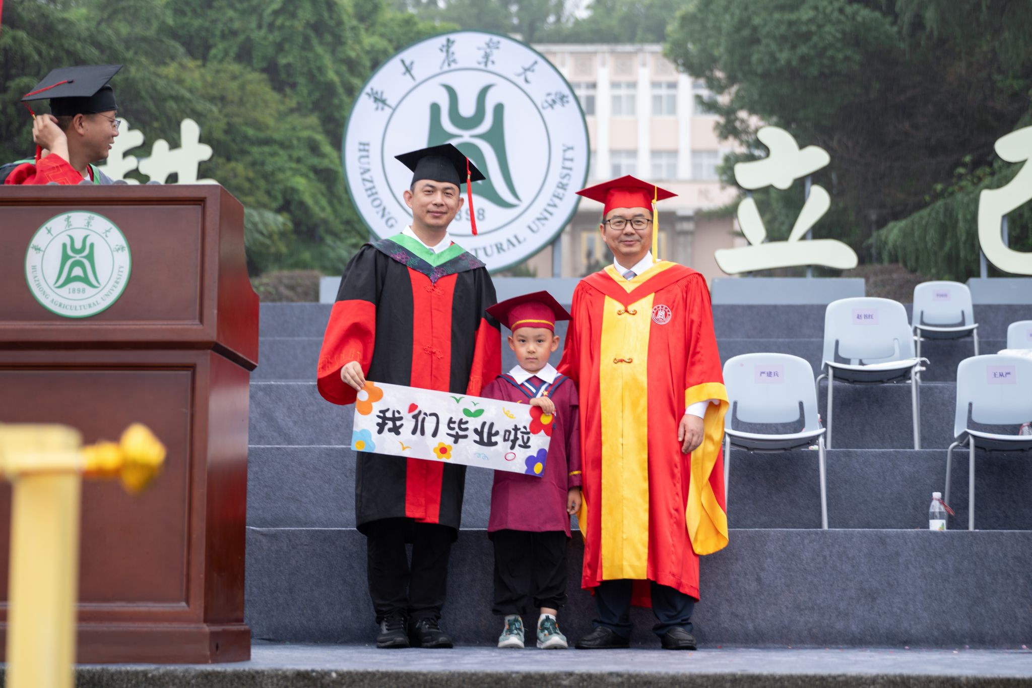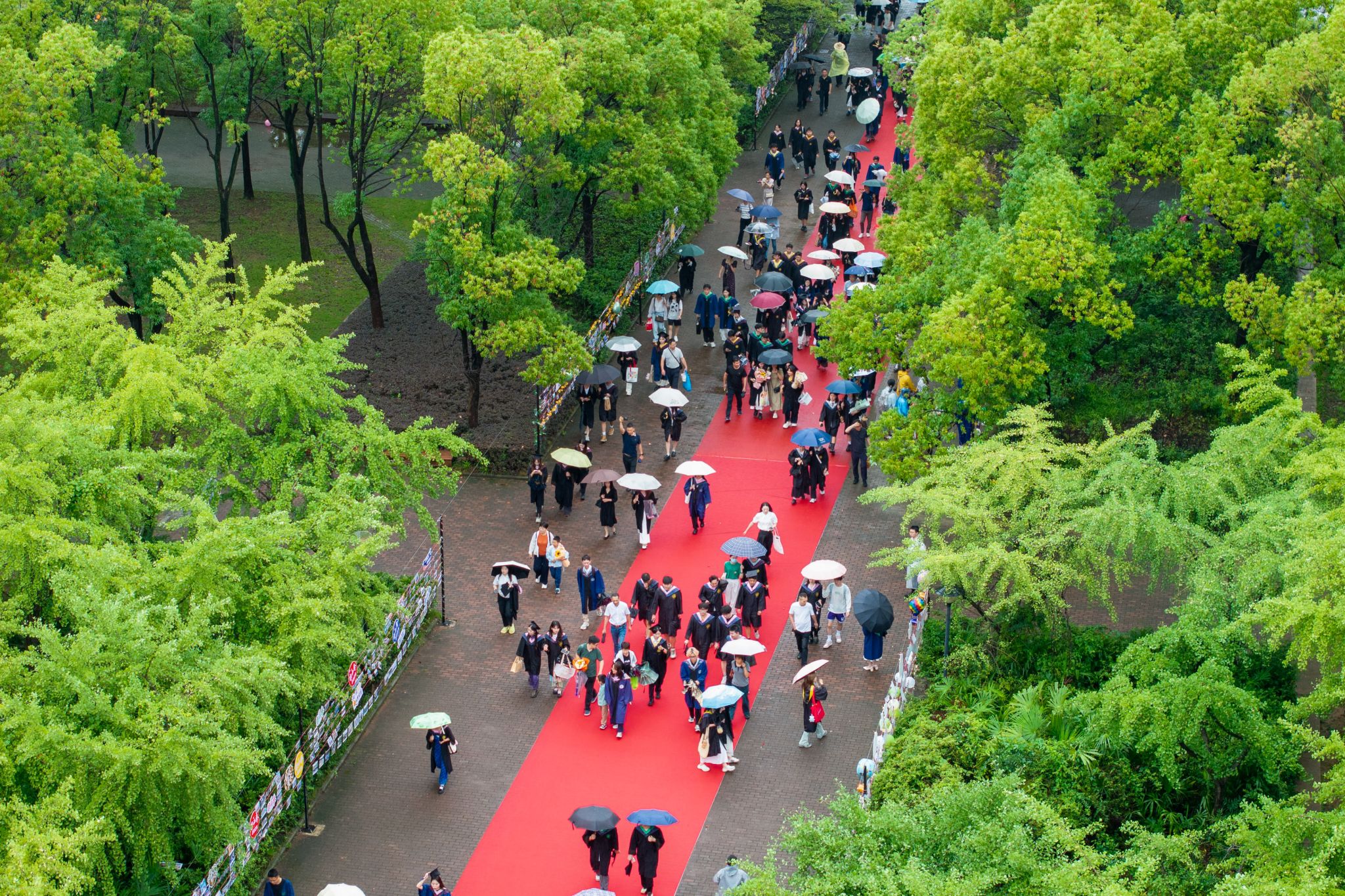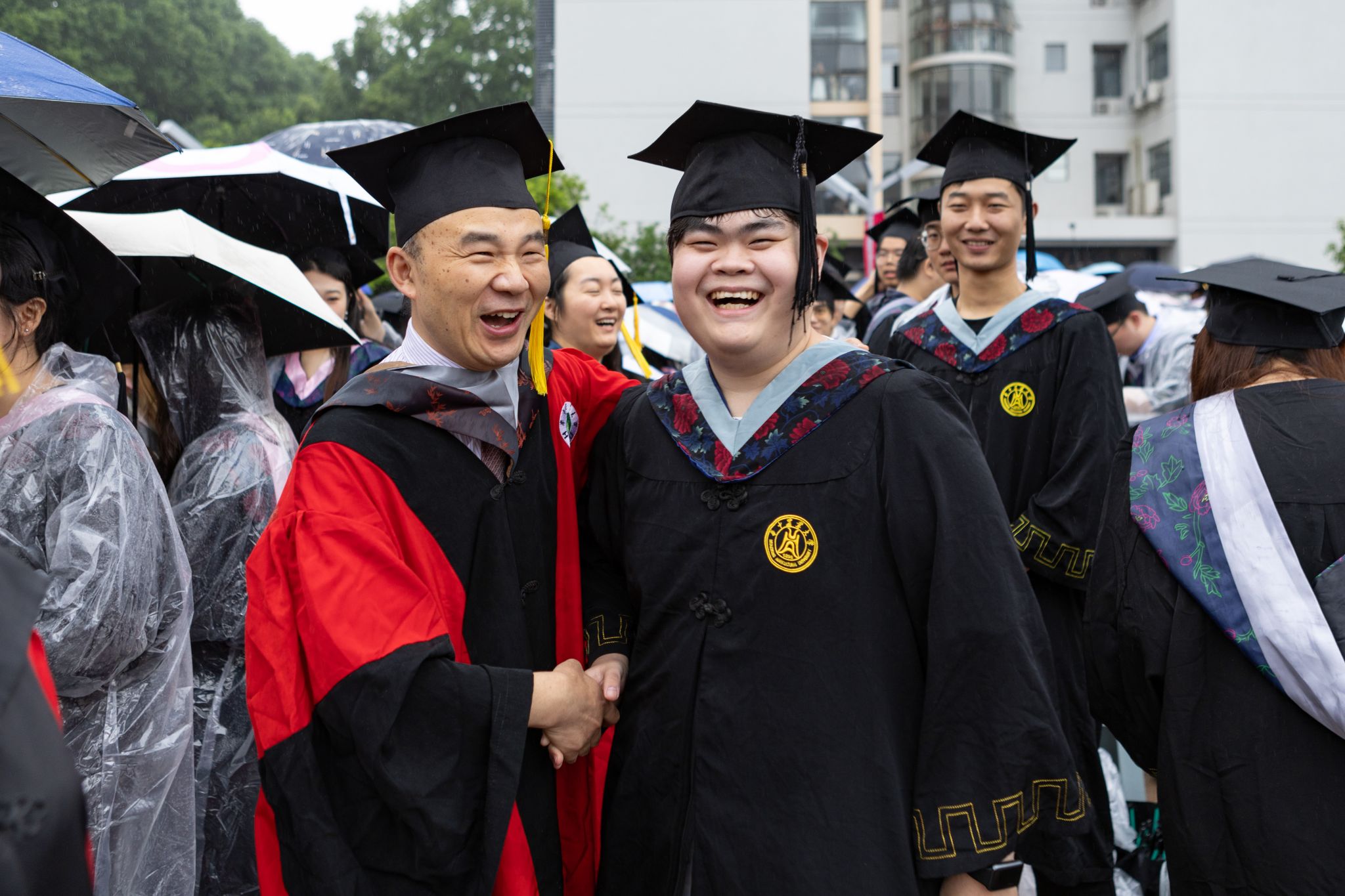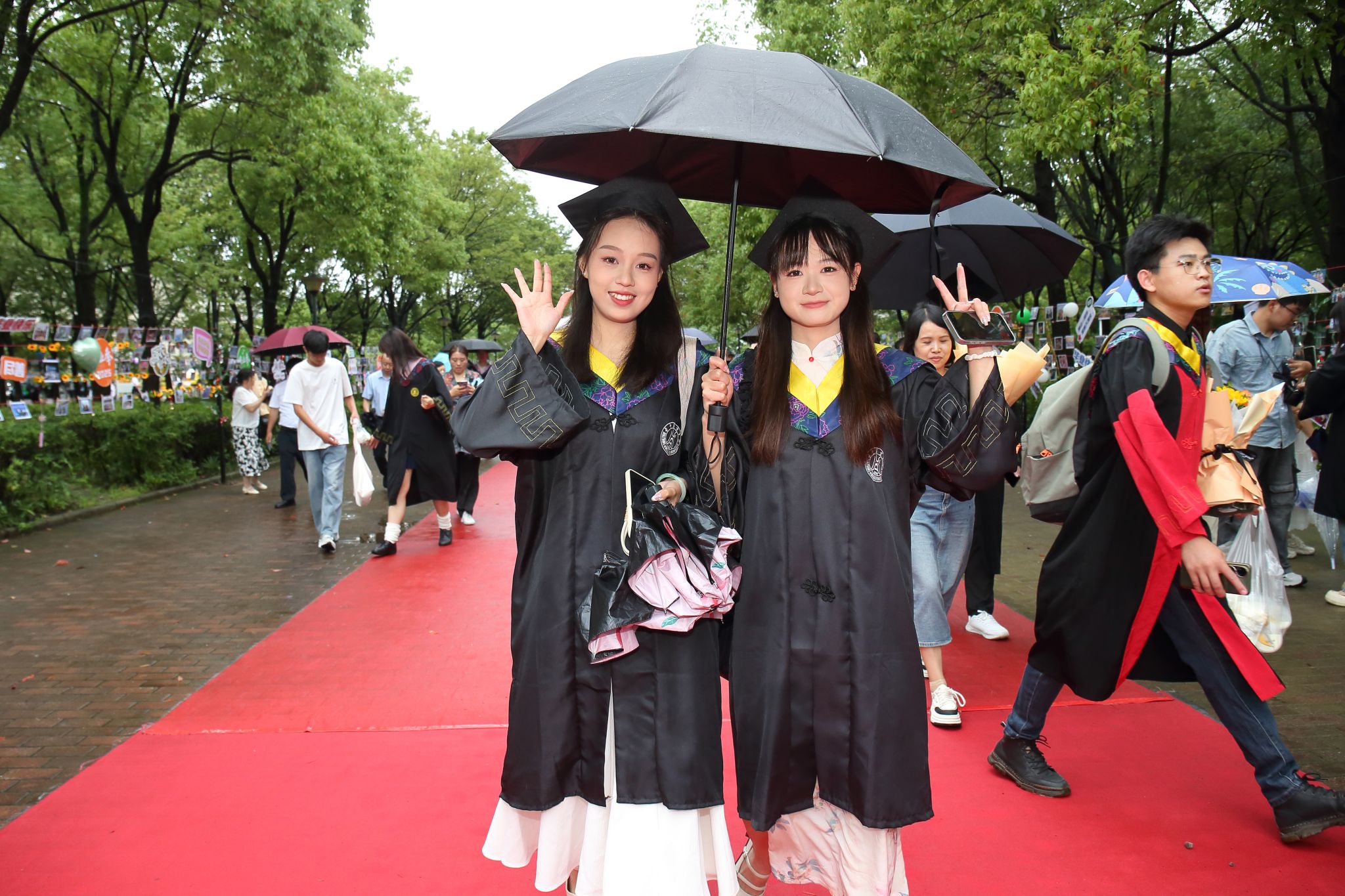 9时30分,仪典在细雨中落下帷幕。毕业生们相互拥抱祝福,他们相约共赴锦程,归来仍是华农少年!