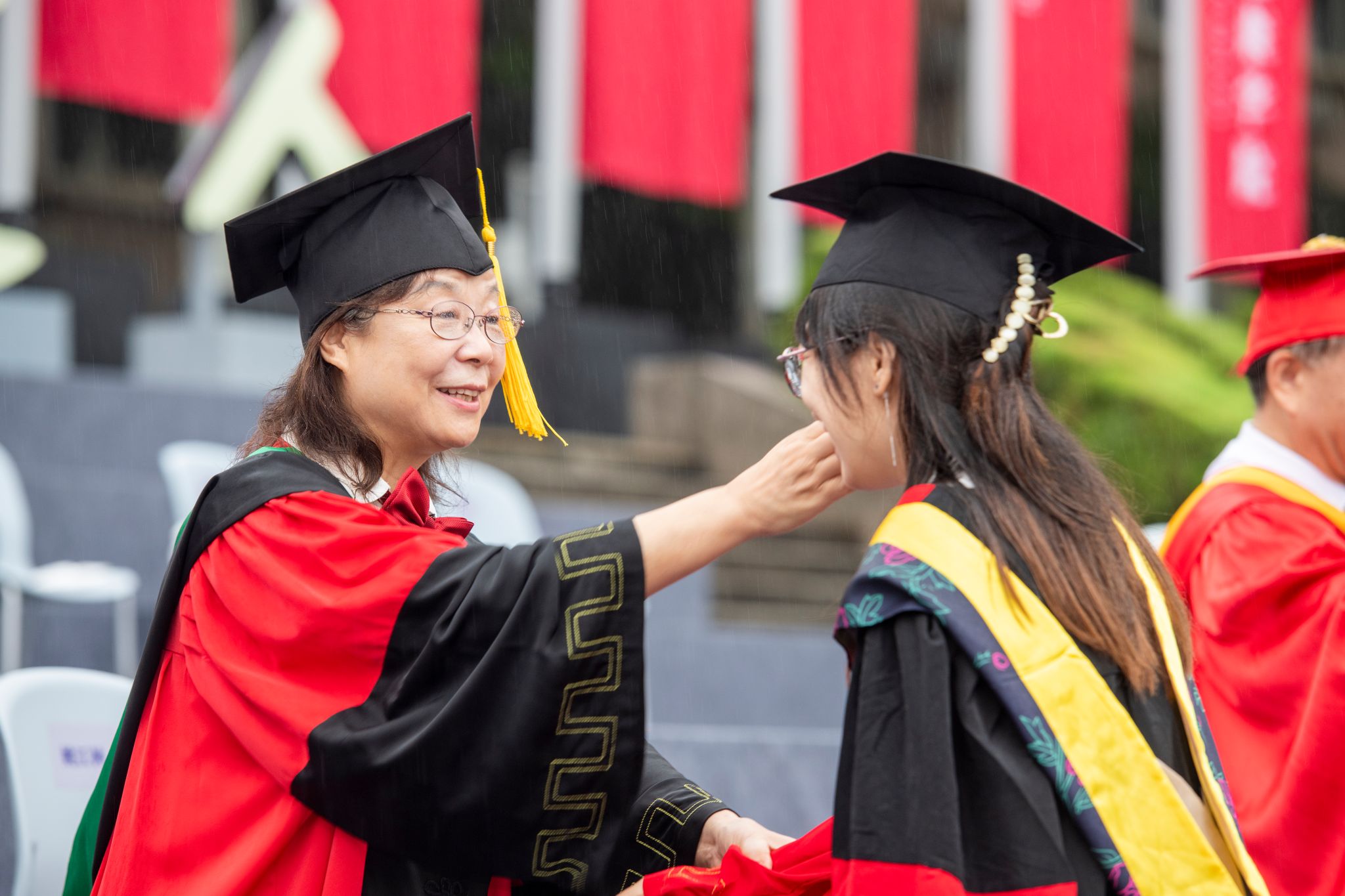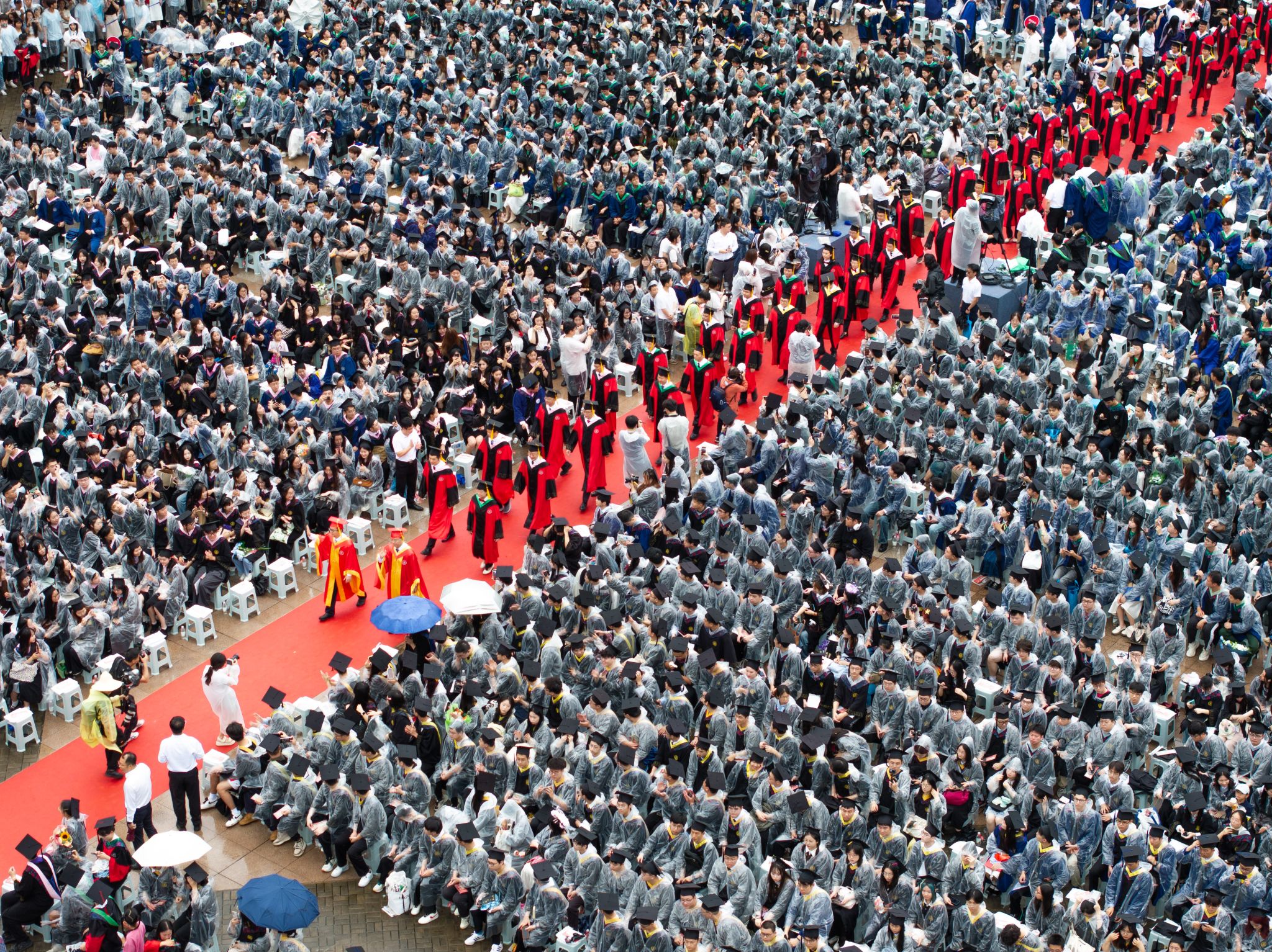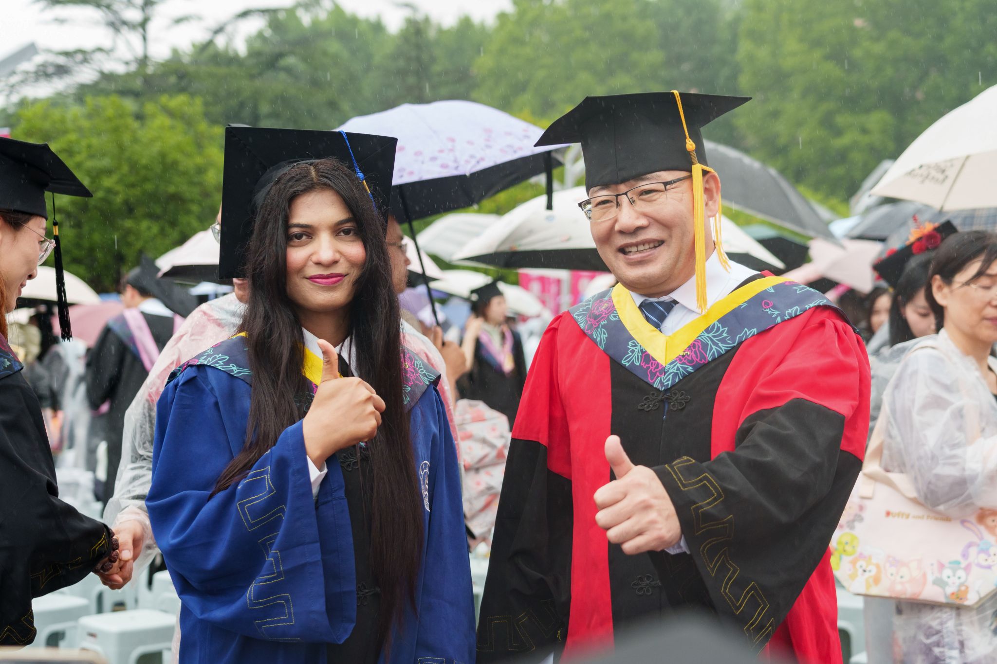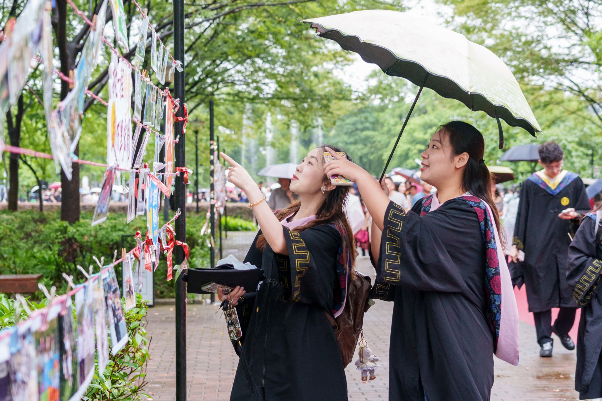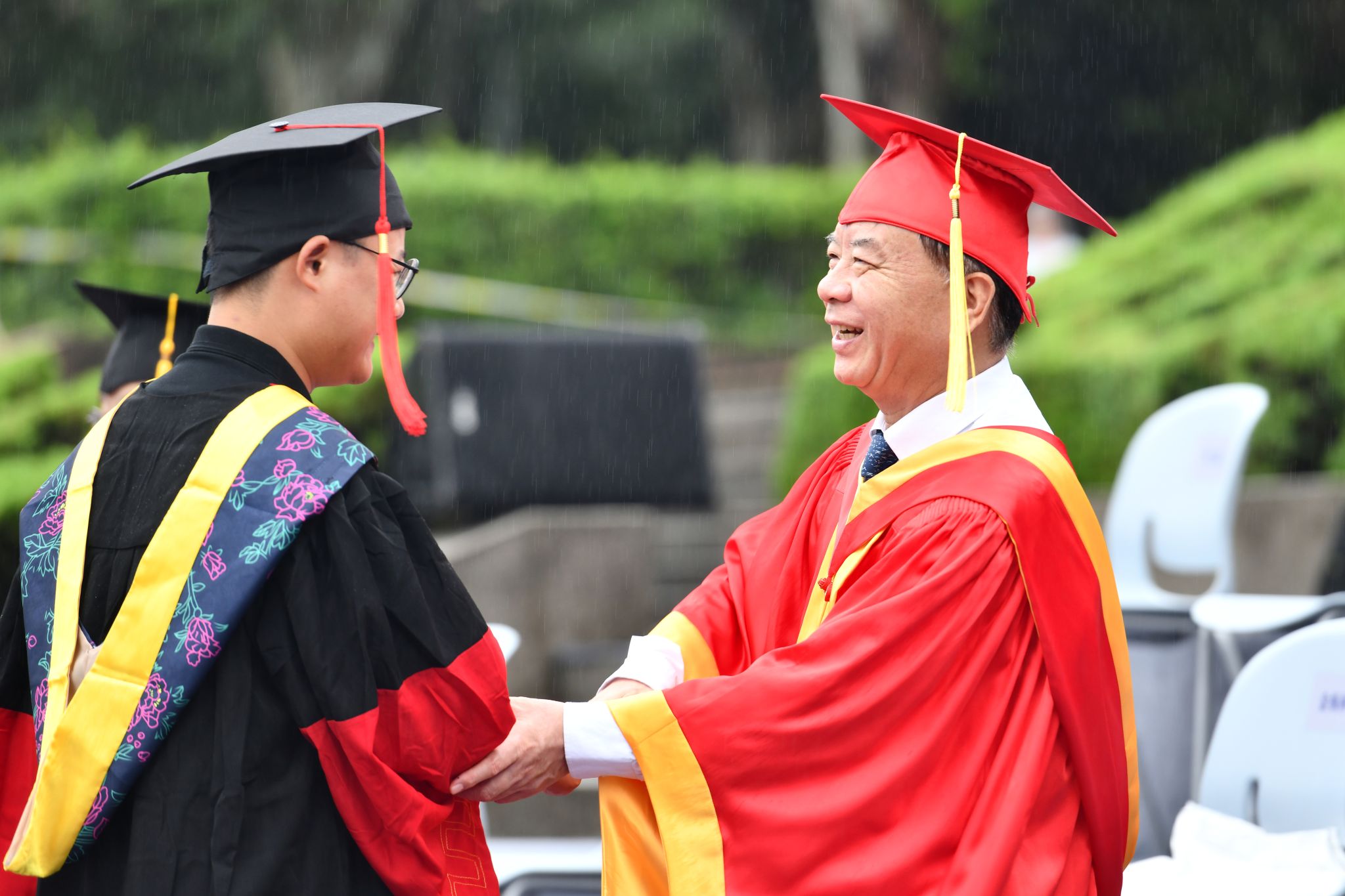 9时30分,仪典在细雨中落下帷幕。毕业生们相互拥抱祝福,他们相约共赴锦程,归来仍是华农少年!
