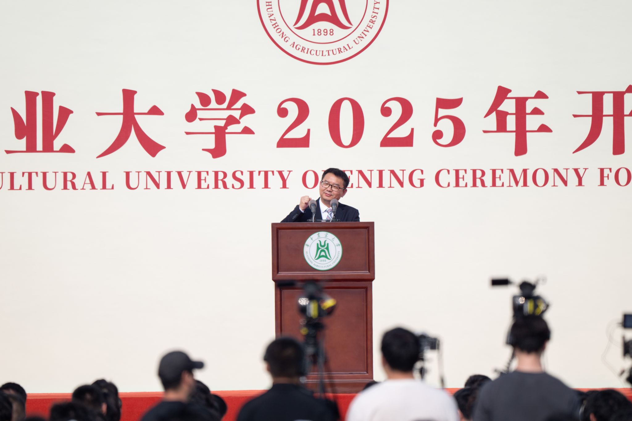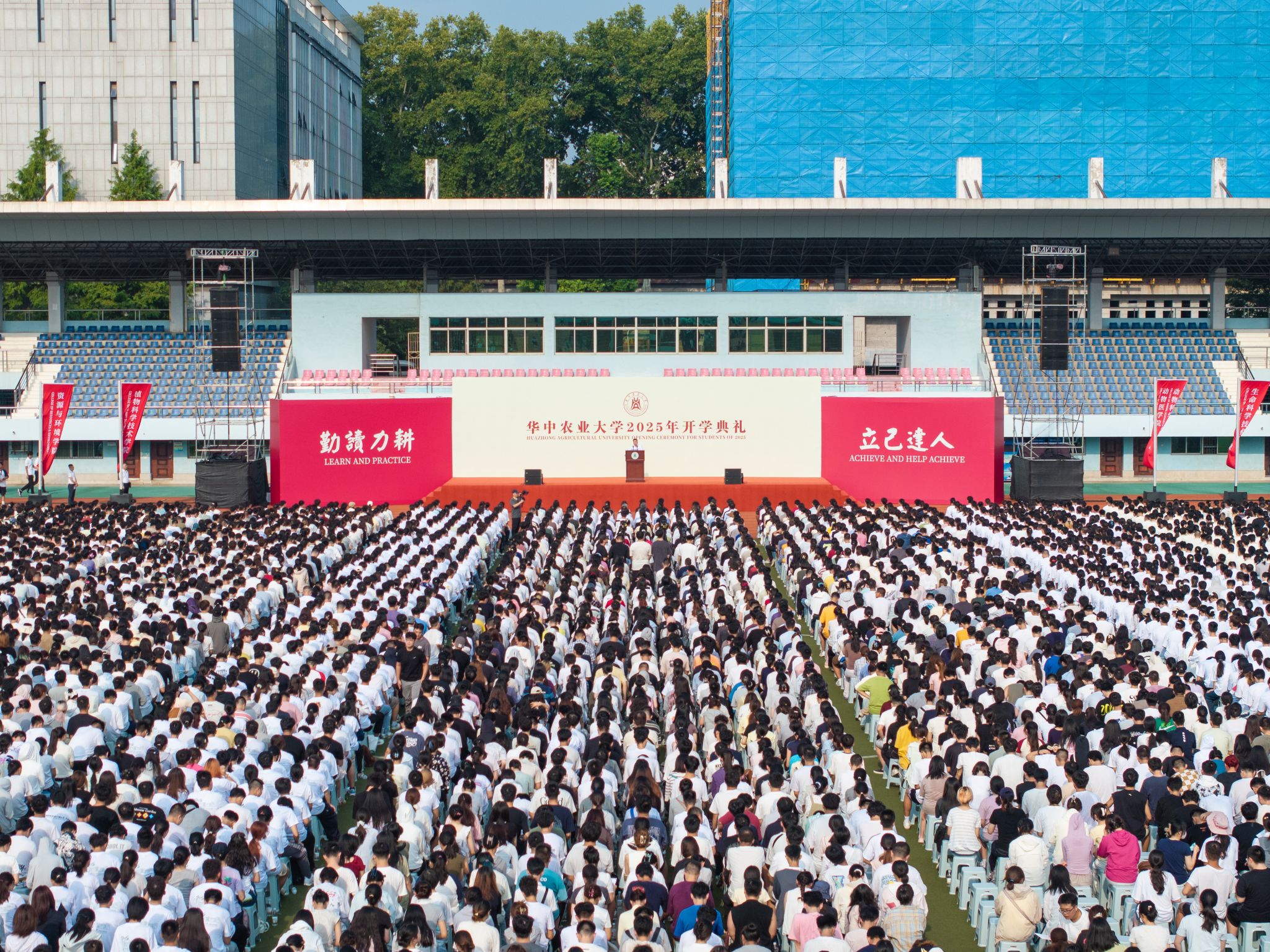 9月4日上午8时,华中农业大学2025级新生开学典礼在东运动场举行。中国工程院院士傅廷栋、金梅林,校党委书记姚江林,校长严建兵,校党委副书记、纪委书记廖济忠,副校长王建鸿、郭...