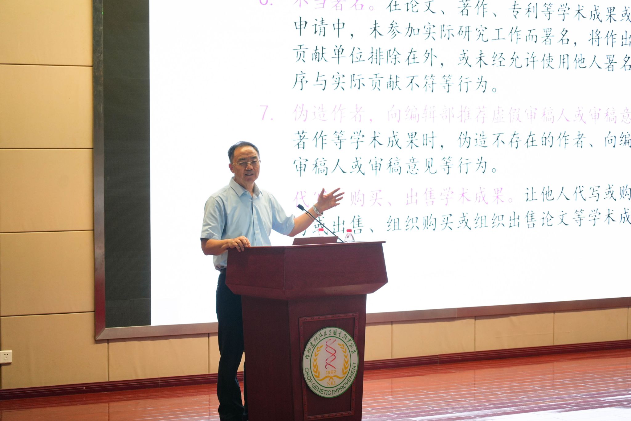 南湖新闻网讯(记者 杜乂旻 李洪亮)9月9日下午,中国科学院院士、校学术委员会主任张启发教授在作物遗传改良全国重点实验室一楼报告厅,为研究生新生作“科学规范与科研诚信建设...